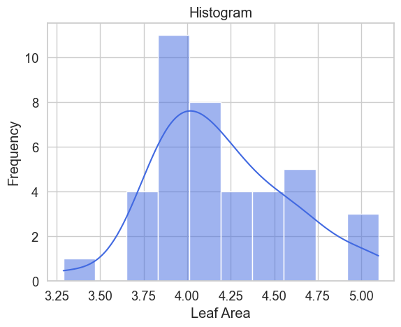 sns.histplot(polyDf['area'], bins=10, kde=True, color="royalblue",