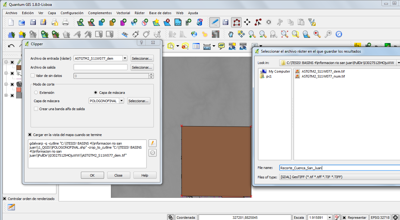 Se permite recortar la Cuenca del DEM con la ayuda de los archivos ya anteriormente generados, de tal manera que el software sólo trabaje con el área de interés.