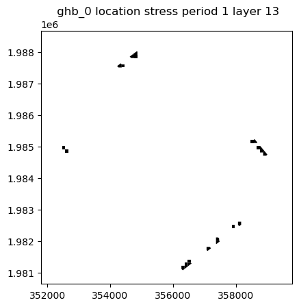 #piezo = modelmap.plot_shapefile('../shp/piezometers2.shp', radius=10)