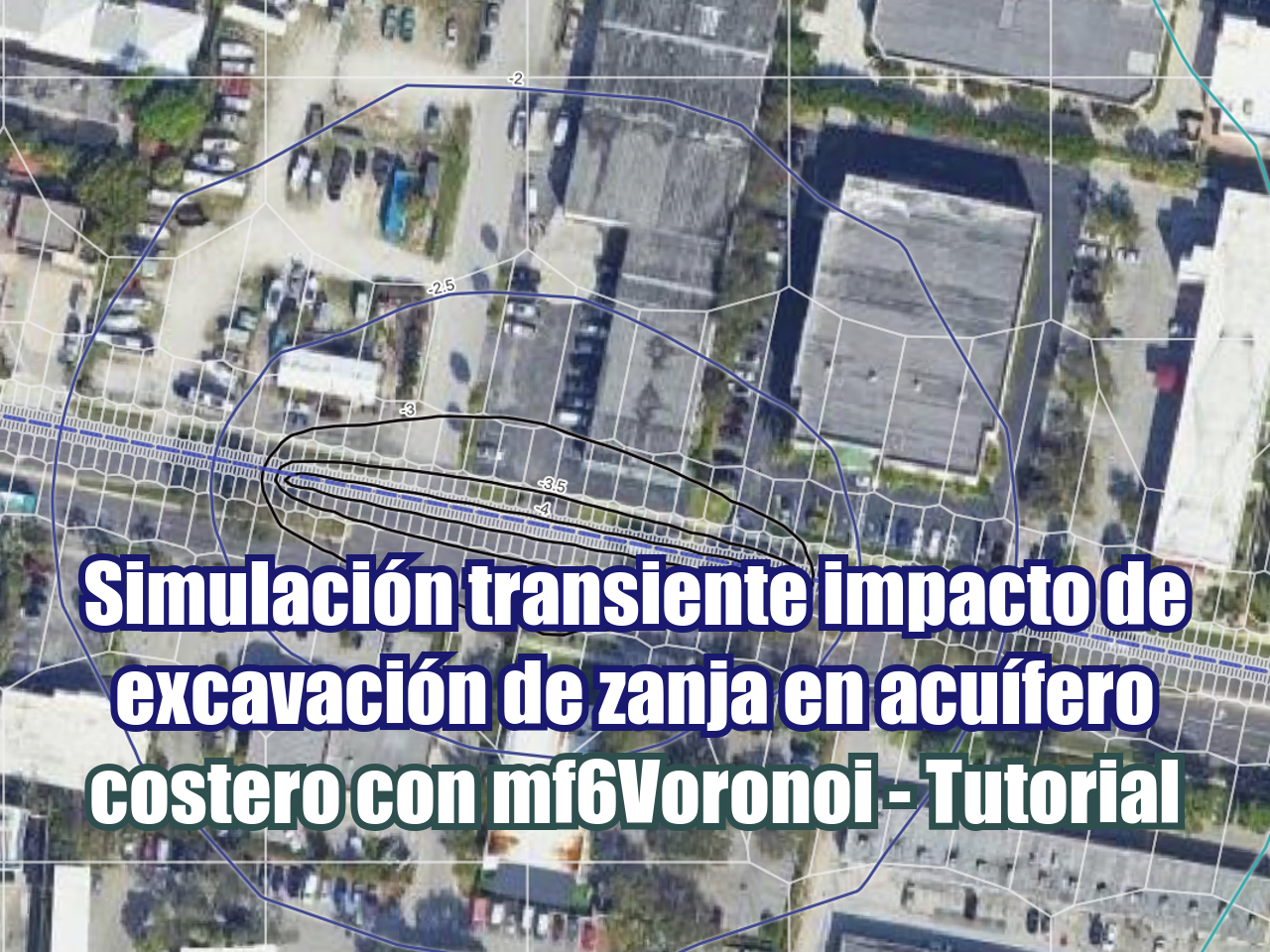 Modelamiento a escala local de una excavación de zanja en 4 etapas en un acuífero costero con mf6Voronoi. El objetivo principal de este trabajo de modelamiento es evaluar el impacto de la excavación en el régimen de flujo de aguas subterráneas cercano.