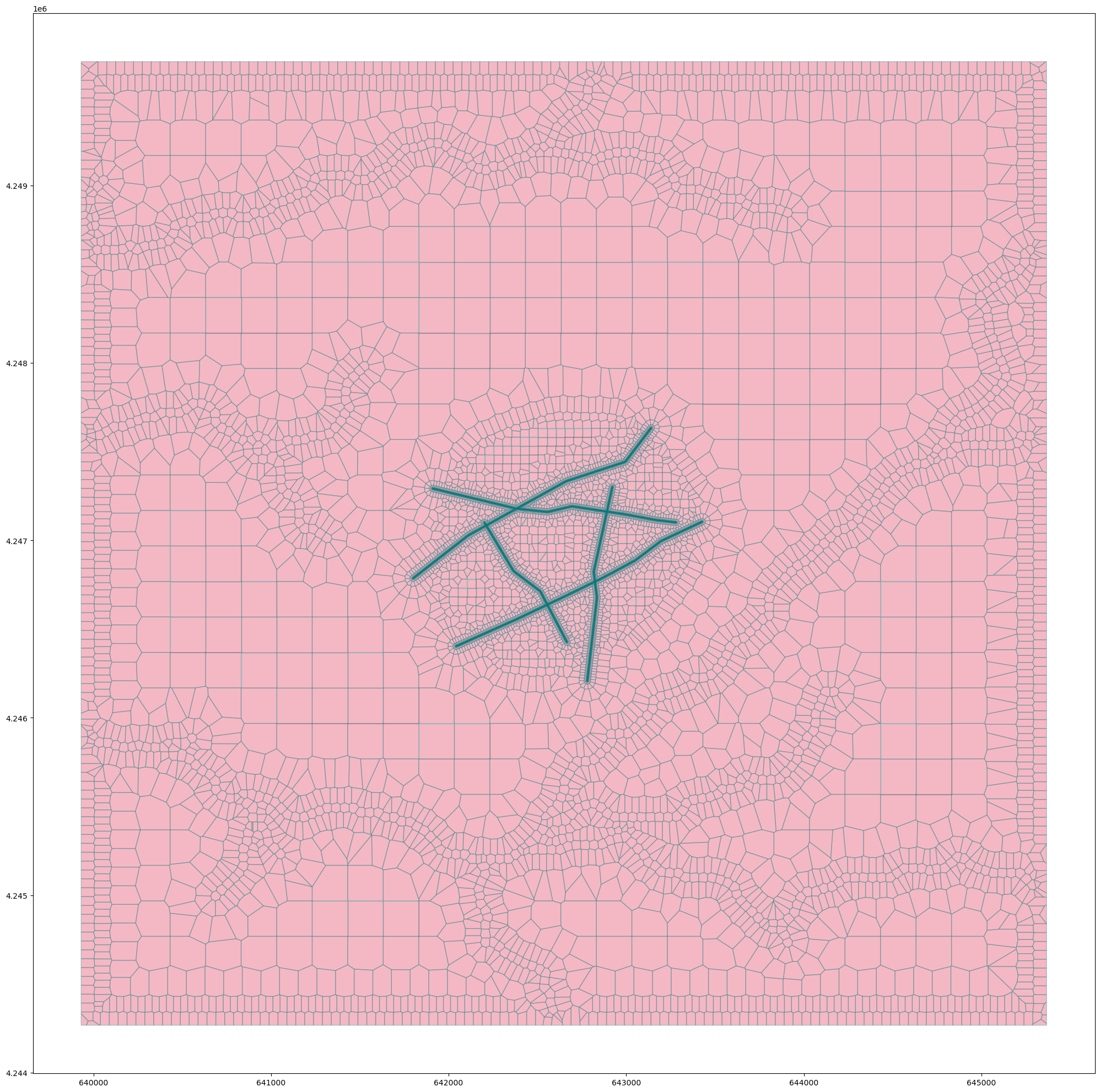 mesh.plot(figsize=(35,25), fc='crimson', alpha=0.3, ec='teal') ## Org